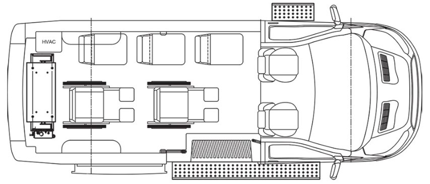 4 Ambulatory (including pilot) + 2 Wheelchair